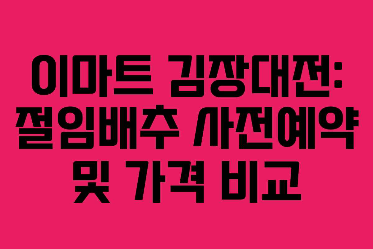이마트에서 진행하는 김장대전은 절임배추를 저렴한 가격에 구매할 수 있는 좋은 기회입니다. 특히 사전예약을 통해 더 많은 혜택을 누릴 수 있으니, 미리 준비하는 것이 중요합니다.