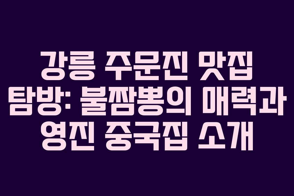 강릉 주문진에는 매운 음식을 사랑하는 이들에게는 더할 나위 없는 맛집이 있습니다. 바로 “영진 중국집”입니다. 이곳은 불짬뽕으로 유명하며, 매운 음식의 진수를 경험할 수 있는 장소입니다. 최근에 이곳을 방문한 후기를 통해 그 매력을 생생히 전해드리겠습니다.