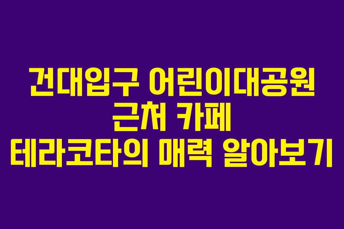 건대입구를 방문했을 때 어디서 여유로운 시간을 보낼지 고민된다면 어린이대공원 근처의 테라코타를 추천한다. 이 카페는 위치가 편리해 접근성이 뛰어나며, 맛있는 디저트와 음료를 제공하는 곳으로 유명하다. 특히 어린이대공원 역에서 가까운 거리에 있어 가족 단위 방문객이나 친구들과의 모임에 적합하다.