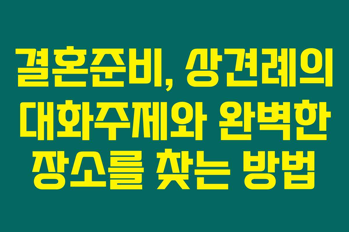 제가 알아본 바로는 결혼준비에서 상견례란 특별한 의미를 가집니다. 이는 두 가족이 처음으로 만나 서로를 알아가는 자리로, 이후의 결혼생활에 큰 영향을 미치기도 하지요. 그래서 자세히 준비하는 것이 중요하다고 느꼈어요. 아래를 읽어보시면 상견례에서 어떤 대화주제를 나누어야 할지 그리고 어떤 장소가 적합한지에 대한 유용한 정보를 확인할 수 있습니다.