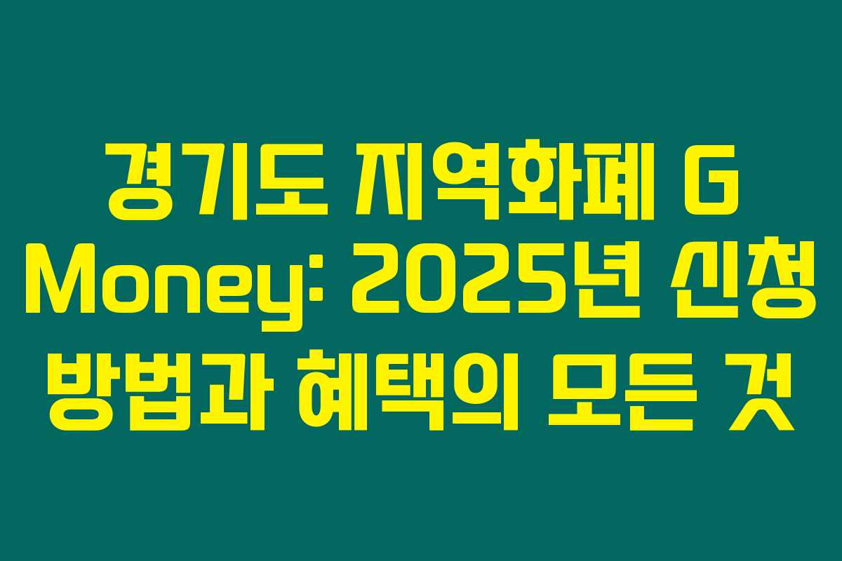 경기도 지역화폐 G Money: 2025년 신청 방법과 혜택의 모든 것