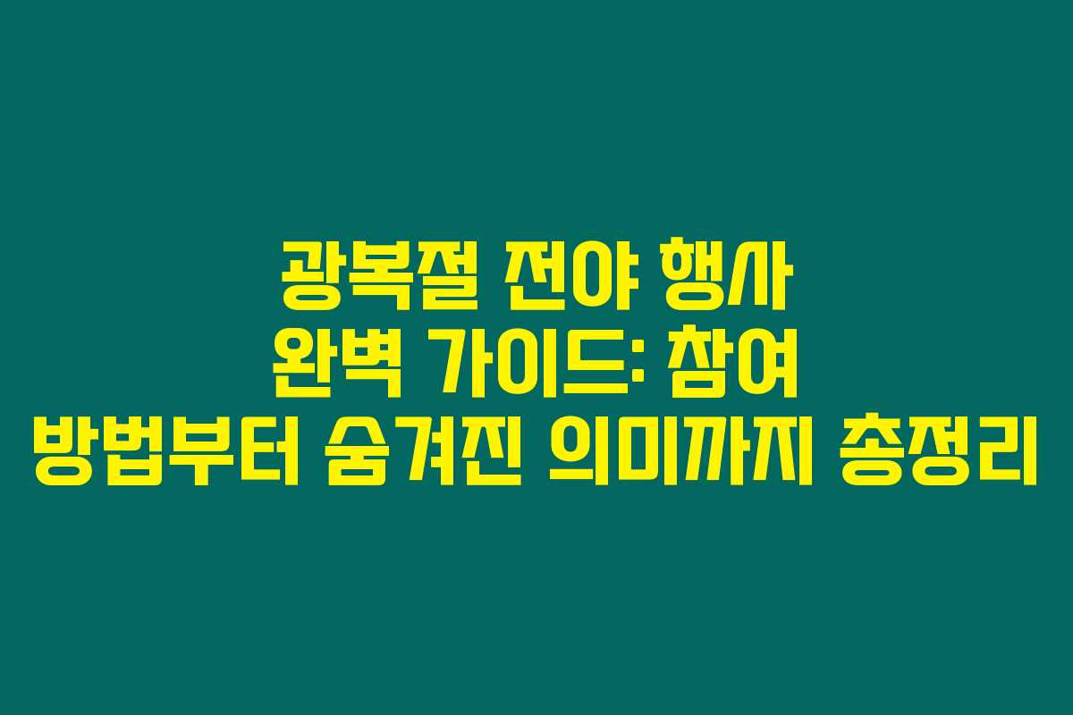 광복절 전야 행사 완벽 가이드: 참여 방법부터 숨겨진 의미까지 총정리