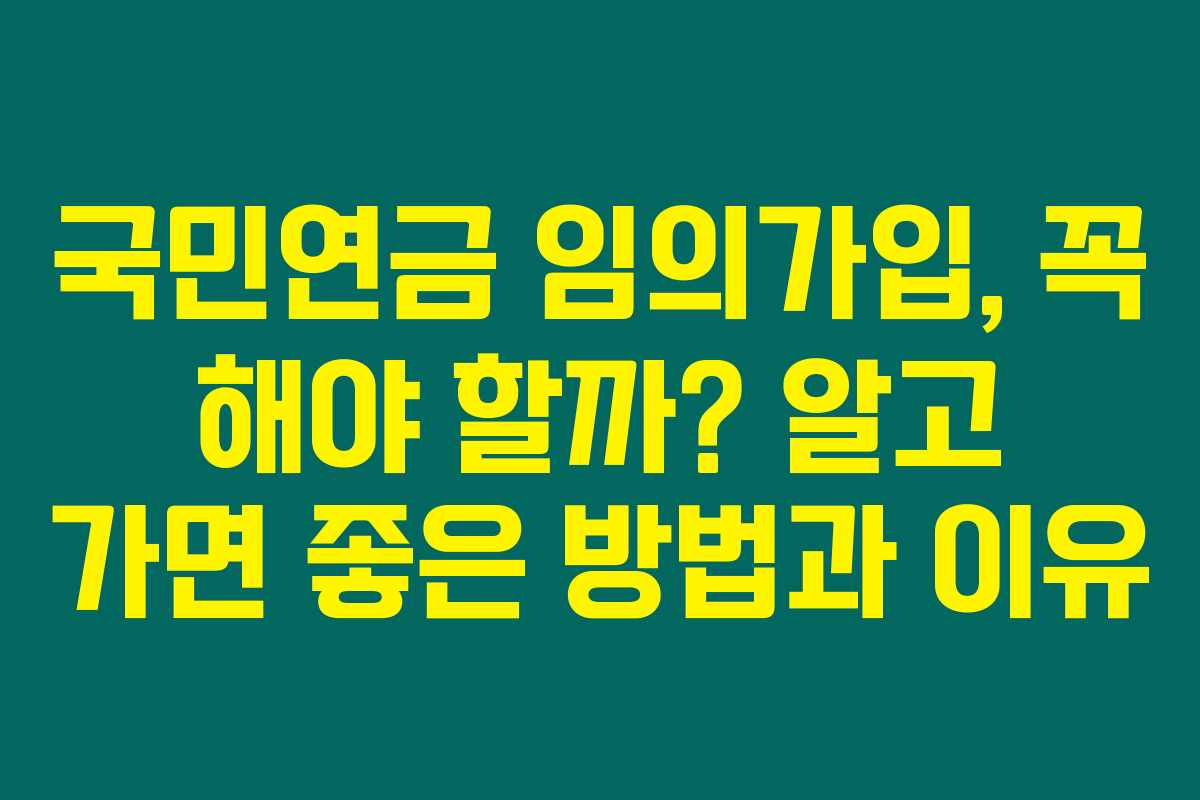 국민연금 임의가입은 나 자신의 미래를 위한 현명한 선택입니다. 여러분도 자신에게 맞는 방법으로 노후에 대비해 보세요!