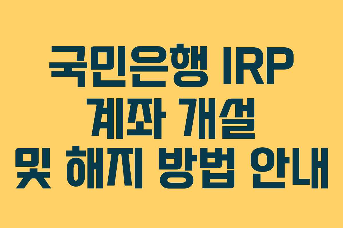 퇴직금 수령을 위한 개인형 퇴직연금(IRP) 계좌는 많은 분들이 활용하고 있습니다. 이번 글에서는 국민은행 IRP 계좌를 모바일로 개설하고 해지하는 방법을 자세히 안내해 드리겠습니다.