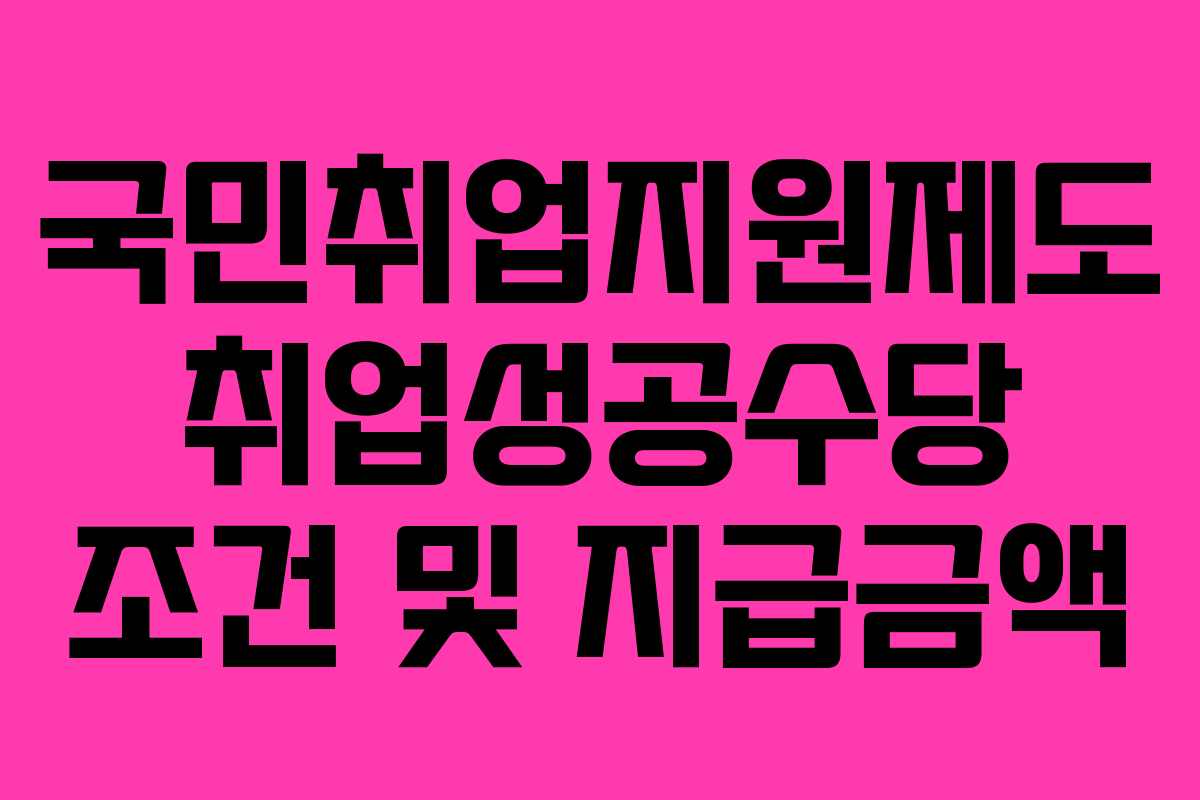국민취업지원제도는 취업을 원하는 국민에게 지원을 제공하는 제도로, 특히 취업성공수당은 취업 후 일정 기간 동안 지원을 받을 수 있는 혜택입니다. 이 글에서는 취업성공수당의 지급 조건, 방법, 그리고 신청 절차에 대해 알아보겠습니다.