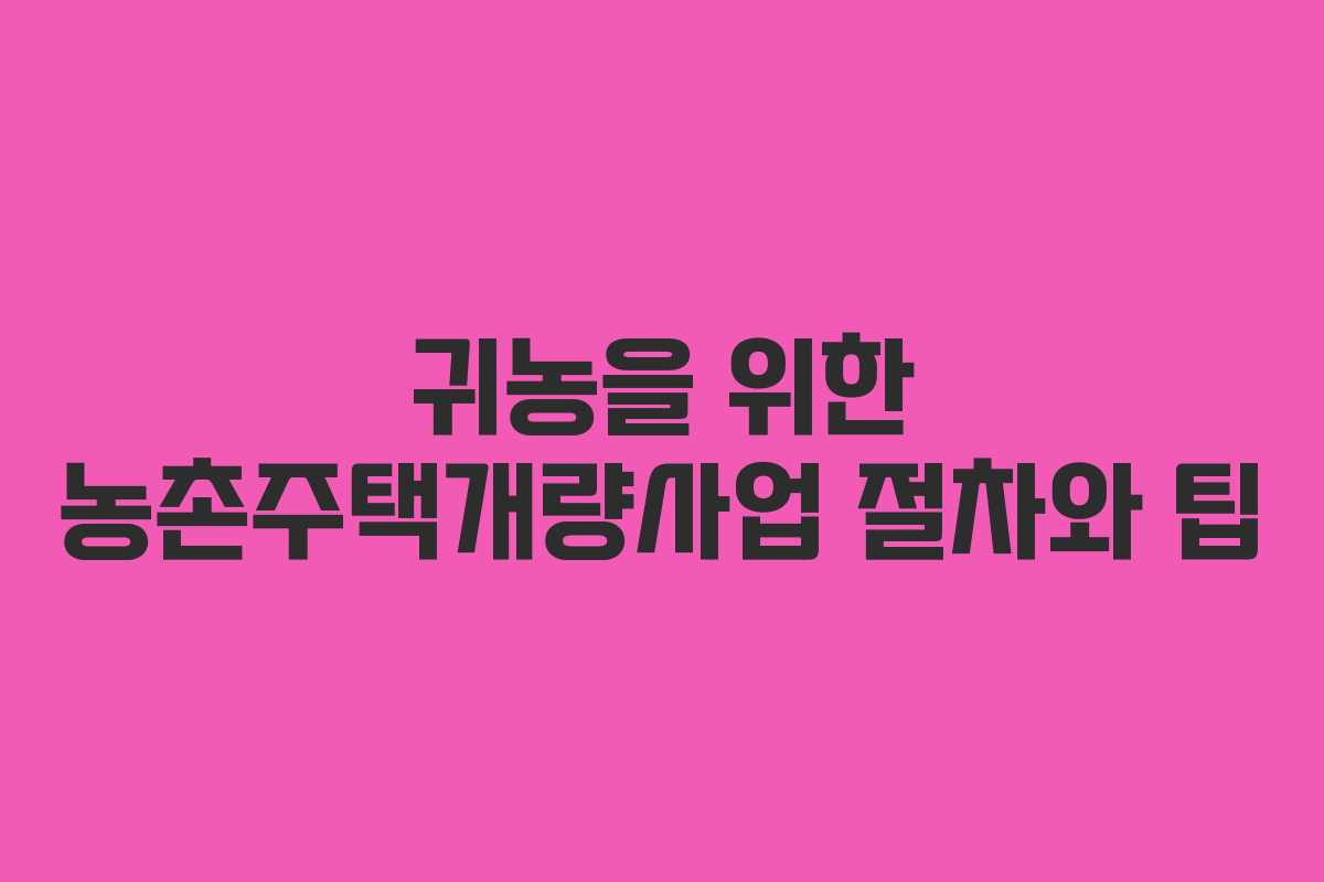 농촌에서의 삶을 꿈꾸는 귀농인들에게 농촌주택개량사업은 큰 도움이 됩니다. 본 포스팅에서는 이 사업의 절차와 유의사항, 대출 관련 정보를 상세히 설명하겠습니다.