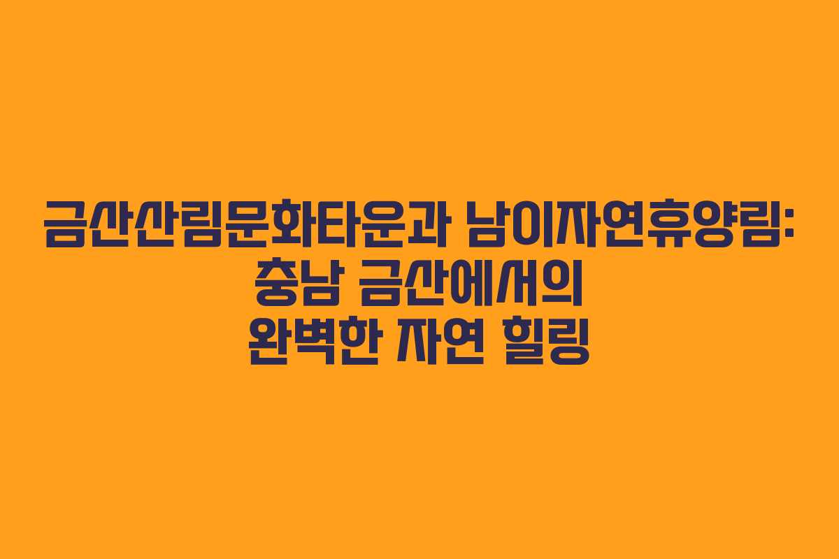 충남 금산에 위치한 금산산림문화타운과 남이자연휴양림은 자연 속에서 휴식을 취하고자 하는 이들에게 최적의 장소입니다. 이 두 곳은 아름다운 경관뿐만 아니라 다양한 편의 시설과 프로그램을 제공하여 방문객들이 편안하게 지낼 수 있도록 돕습니다.