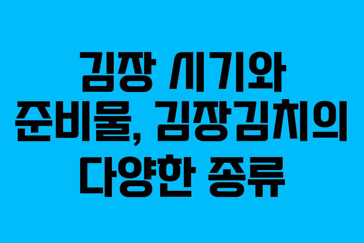 김장은 한국의 전통적인 겨울 문화로, 식품을 장기 보관하고 가족과의 특별한 시간을 공유하는 중요한 행사입니다. 이번 글에서는 김장 시기, 준비물, 과정, 그리고 다양한 종류의 김치에 대해 살펴보겠습니다.