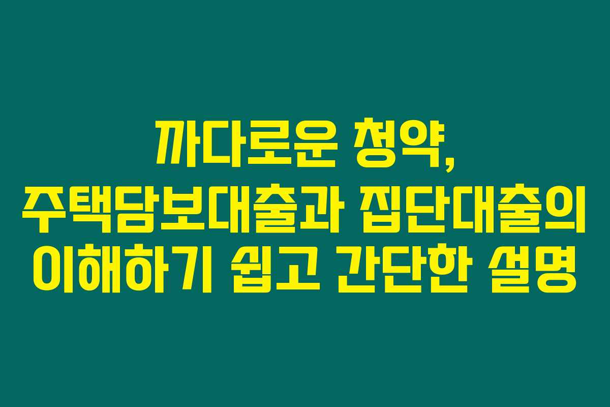 제가 직접 알아본 바로는, 주택담보대출은 많은 사람들에게 집을 사는 데 필수적인 금융 상품으로 자리 잡고 있습니다. 특히 집단대출은 많은 사람들이 쉽게 접근할 수 있는 대안으로 인식되고 있지요. 아래를 읽어보시면 집단대출의 정의와 절차, 그리고 주택담보대출과의 차이점에 대한 명확한 정보를 얻으실 수 있을 것 같아요.