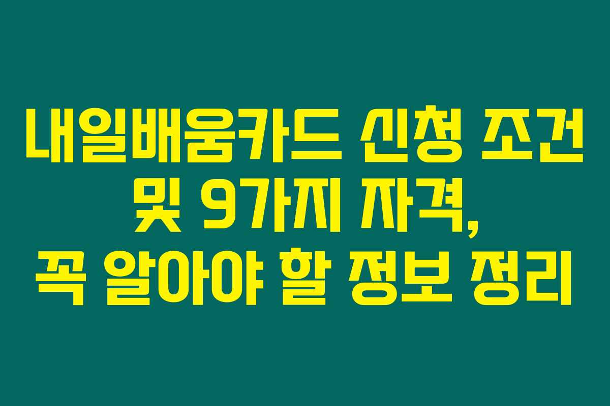 내일배움카드는 누구나 교육이 필요한 사람이라면 신청할 수 있지만 특정 조건에 따라 제한이 있습니다. 그래서 신청하려면 다음 9가지 조건을 잘 이해하고 있어야 해요.