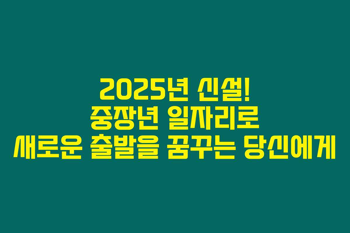 장년층의 취업을 생각하고 계시다면 2025년에 새롭게 신설되는 중장년 일자리에 관한 최신 정보를 반드시 확인해야 해요. 여러 가지 지원 제도와 다양한 일자리 기회가 생길 예정인데요. 기회를 놓치고 싶지 않다면 아래를 읽어보시면 큰 도움이 될 거예요.