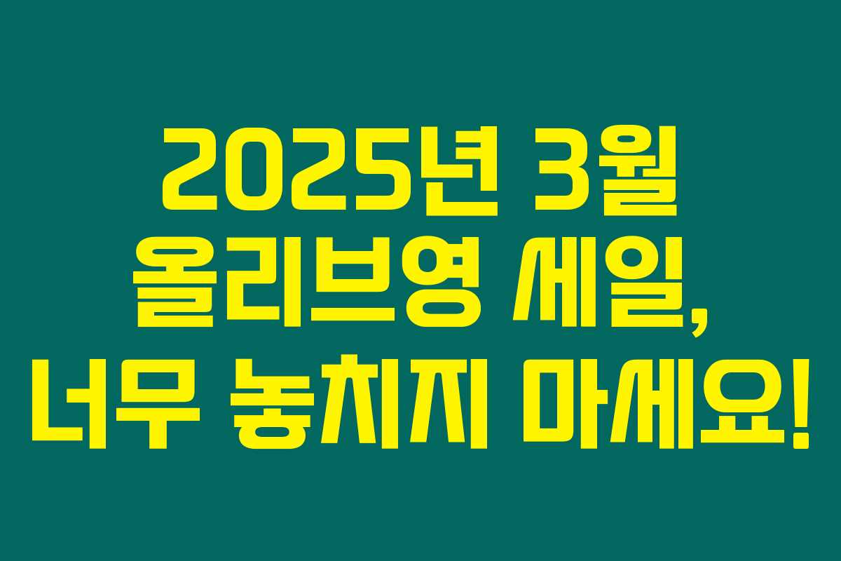 이번 2025년 3월 올리브영 세일은 정말 놓칠 수 없는 기회니, 현명한 소비로 행복한 쇼핑 되세요!