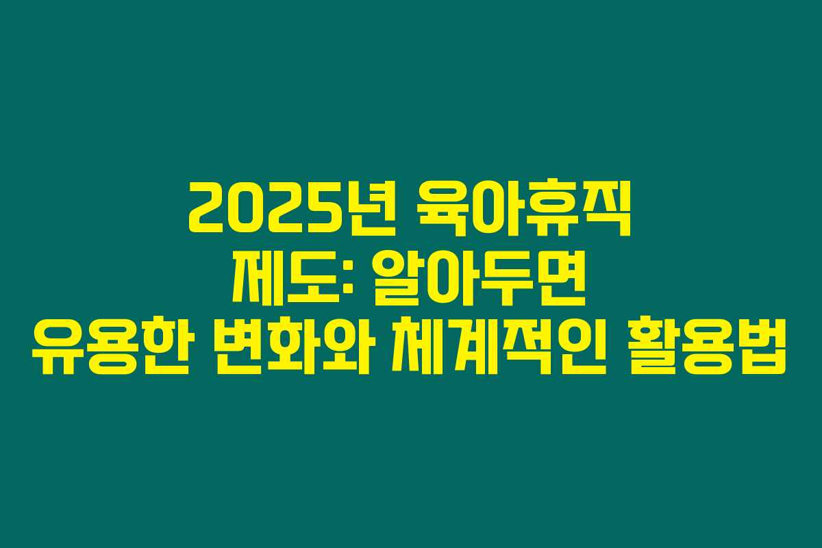 2025년 육아휴직 제도: 알아두면 유용한 변화와 체계적인 활용법