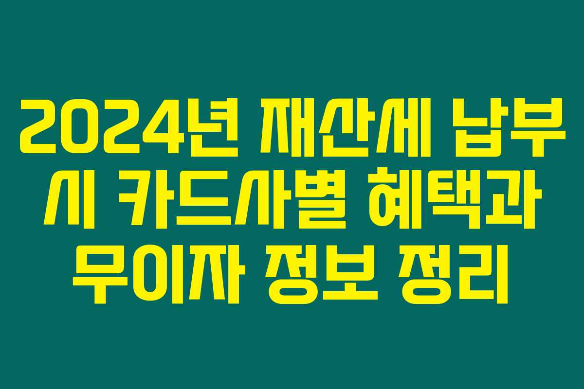 재산세 납부 시 다양한 카드사에서 제공하는 무이자 할부 혜택이 있습니다. 어떤 카드사가 어떤 조건으로 제공하는지 확인해보세요.