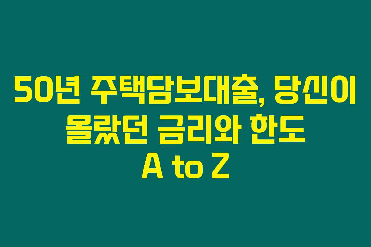 50년 주택담보대출, 당신이 몰랐던 금리와 한도 A to Z