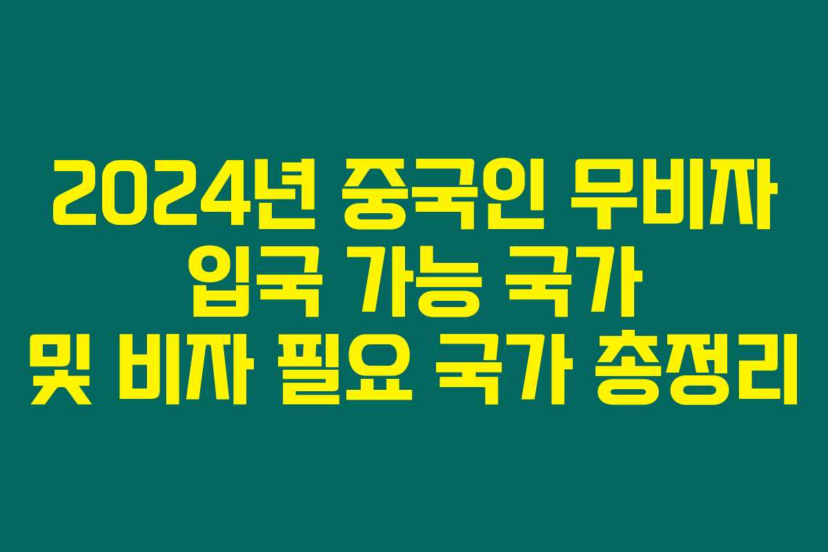 2024년에 중국인이 무비자로 입국할 수 있는 나라와 비자가 필요한 나라들을 정리해 보았습니다. 이렇게 무비자로 갈 수 있는 나라는 어디인지, 어떤 절차가 필요한지 궁금하신 분들은 꼭 읽어보세요! 아래의 정보를 통해 여행 준비에 도움이 되실 거예요.