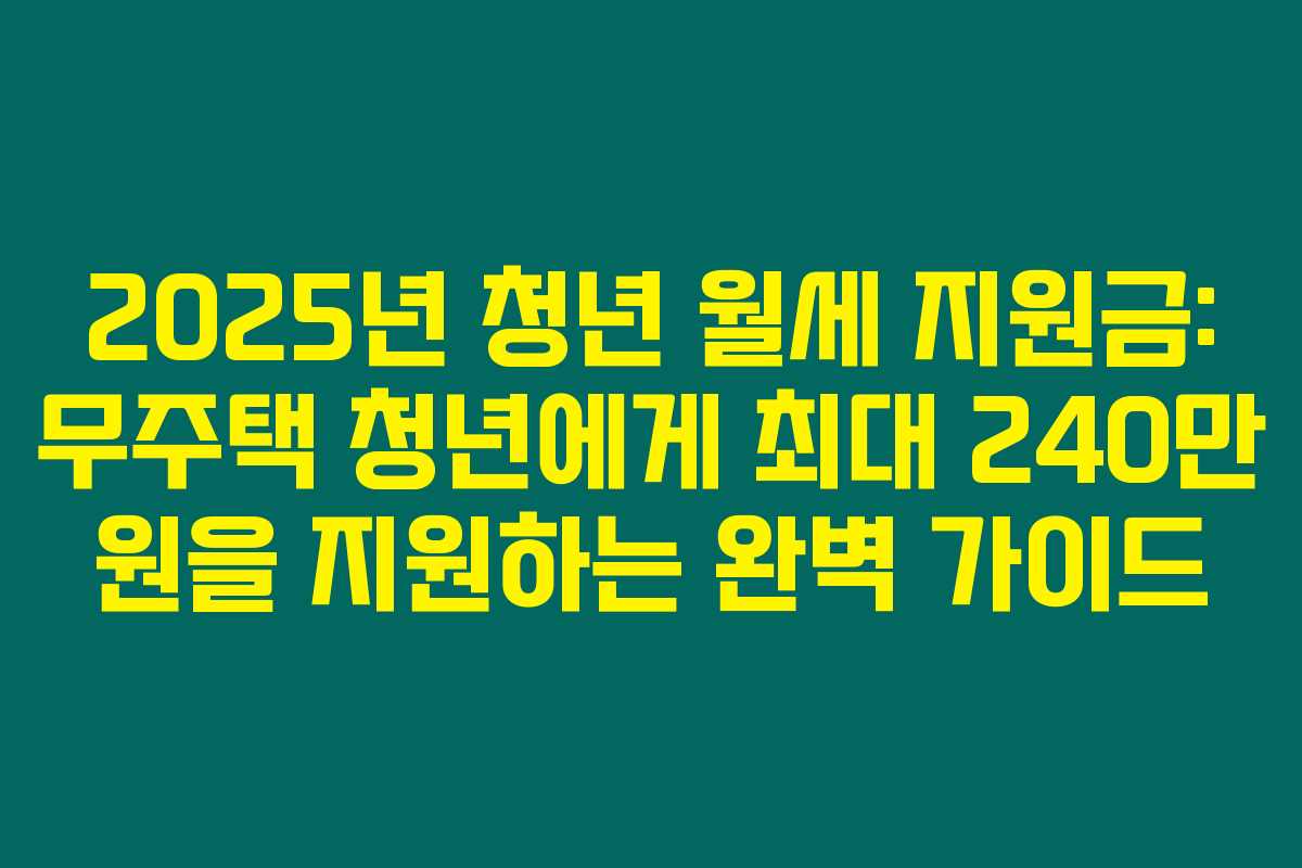 2025년 청년 월세 지원금에 대해 상세히 알려드릴게요. 제가 직접 확인해본 결과, 무주택 청년이 월세 부담을 덜기 위해 최대 240만 원을 지원받을 수 있는 제도가 시행됩니다. 이 제도는 청년들에게 큰 도움이 될 것으로 기대합니다. 신청 자격, 방법, 지급 일정 등을 자세히 알아보세요.