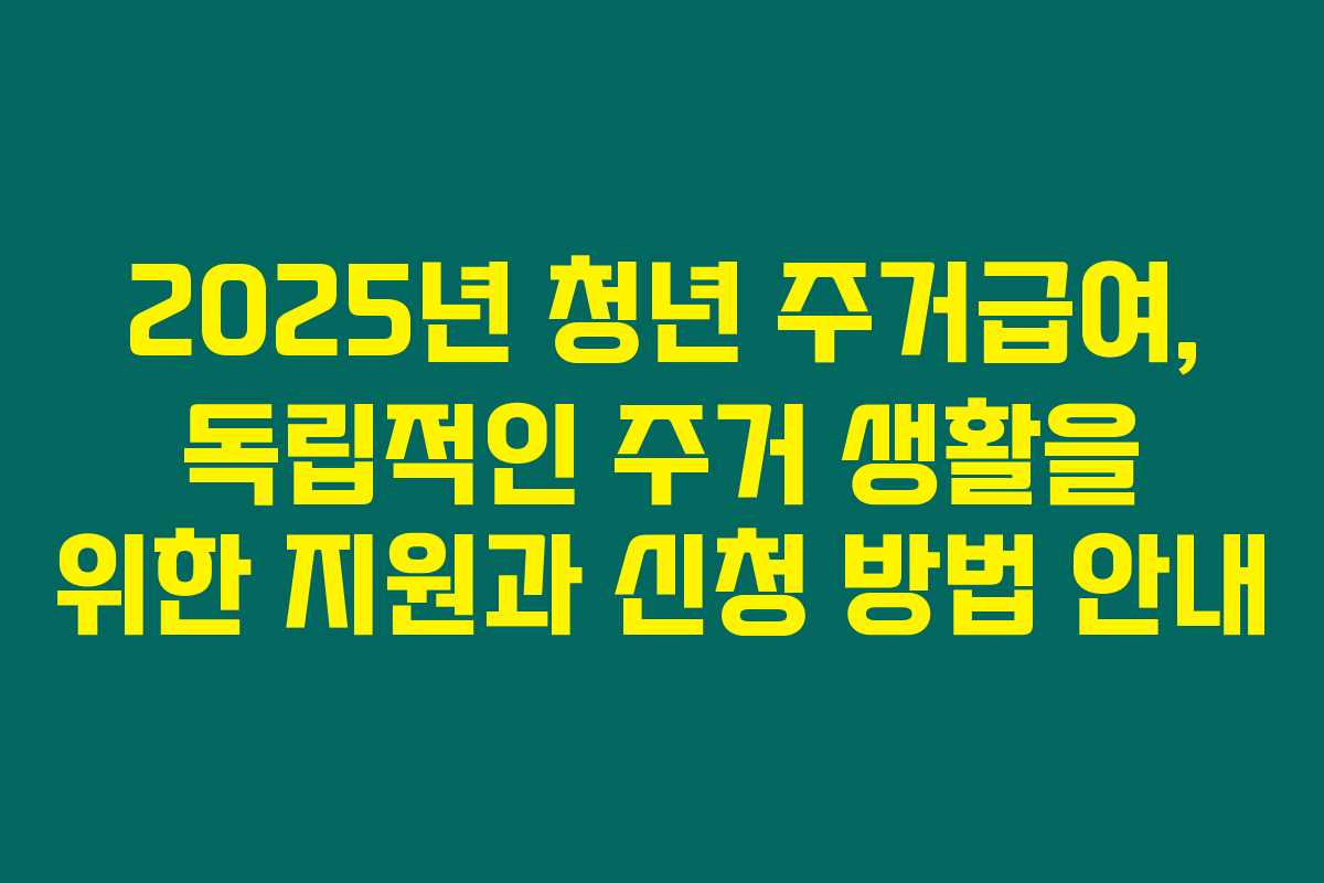 2025년 청년 주거급여, 독립적인 주거 생활을 위한 지원과 신청 방법 안내