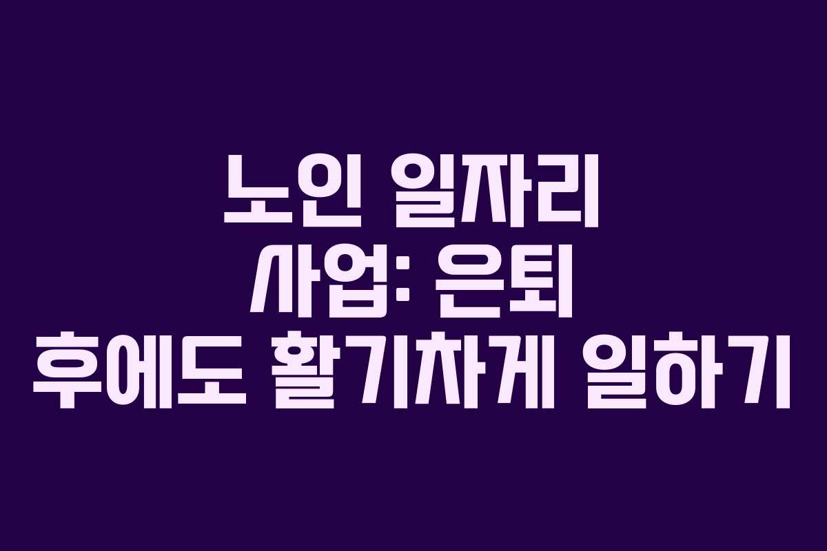 노인일자리 사업은 어르신들이 은퇴 후에도 활기차고 보람된 삶을 살 수 있도록 돕는 정부 주도 프로그램입니다. 이 사업은 경제적 지원뿐만 아니라 사회적 참여를 통해 정서적 안정감과 삶의 질을 높이는 데 중점을 두고 있습니다.