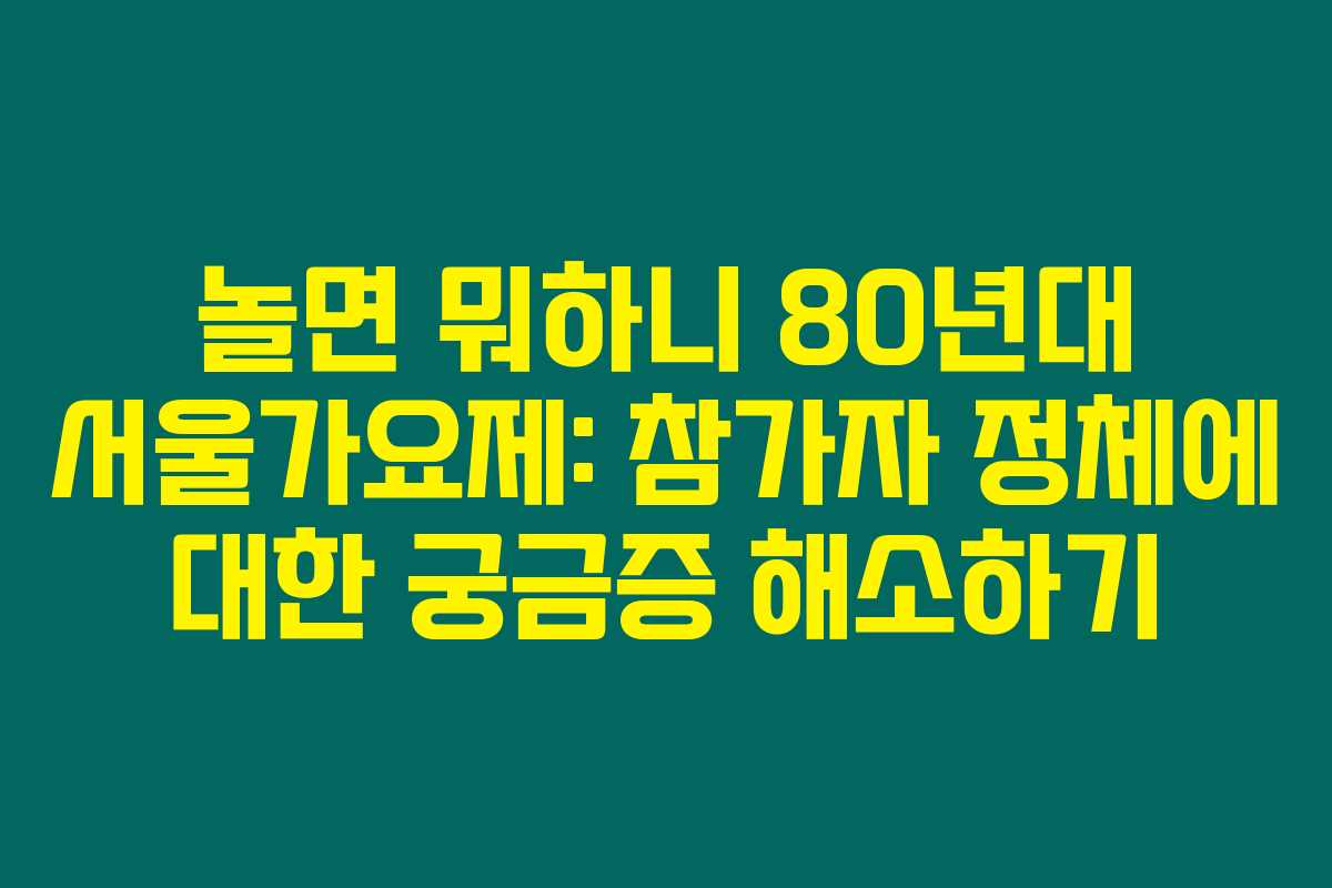 80년대 서울가요제에 대한 이야기를 들으면, 한 지붕 아래에서 생생하게 노래했던 추억들이 떠오르지 않나요? 만약 여러분이 80년대 서울가요제 참가자 정체가 궁금하시다면, 아래를 읽어보시면 많은 도움이 될 거예요. 최근 MBC의 인기 예능 프로그램 ‘놀면 뭐하니?’에서 진행된 이 서울가요제 프로젝트는 레트로 감성과 현대 아티스트들을 조화롭게 엮어내며 큰 화제를 모으고 있어요.