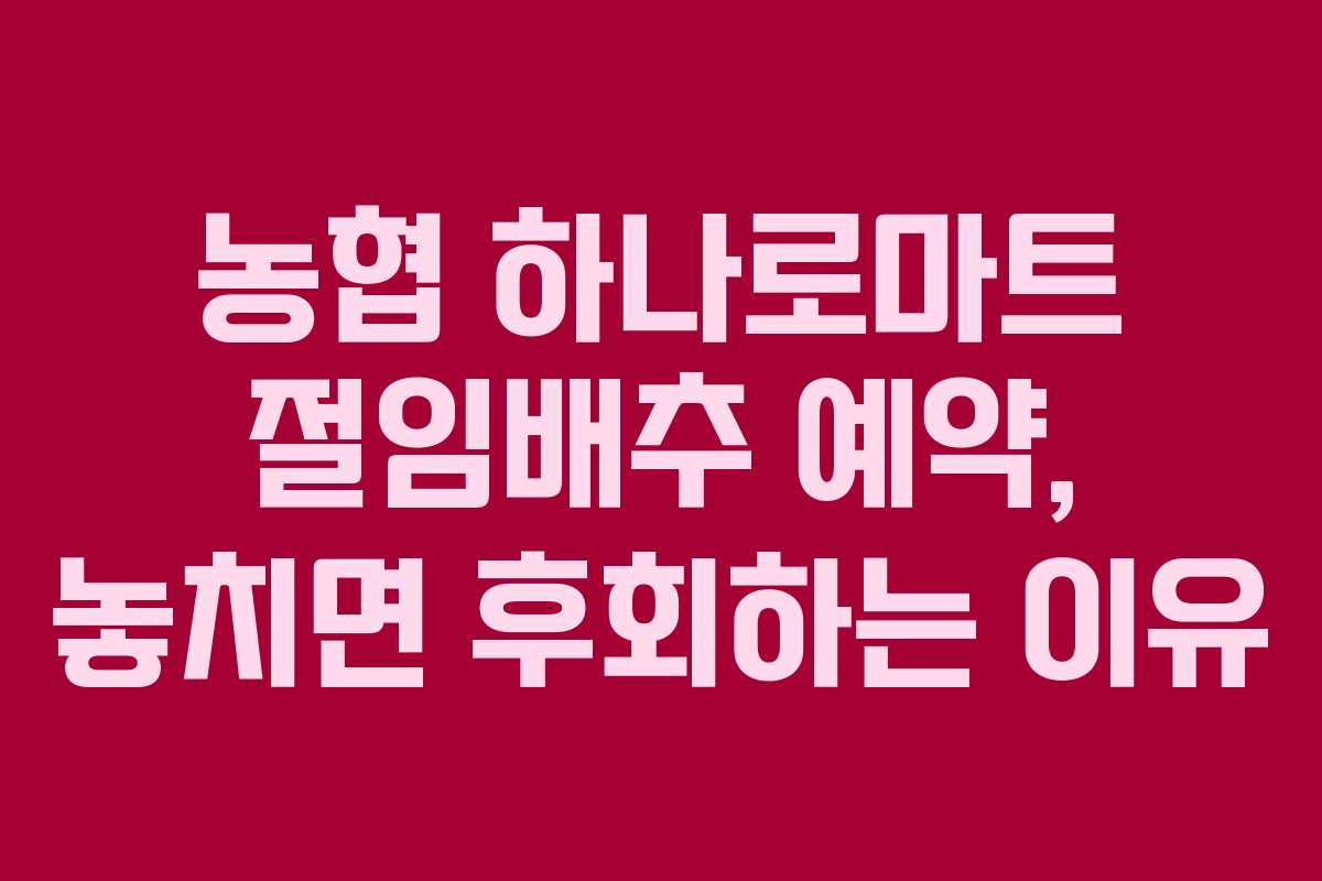 절임배추 예약은 농협 하나로마트의 모바일 앱이나 웹사이트를 통해 간편하게 할 수 있습니다. 하지만 각 매장마다 예약 가능한 수량이 상이하므로 미리 확인이 필요합니다. 특히 인기 상품이 많아 예약 기간이 짧아질 수 있으니 주의해야 합니다.