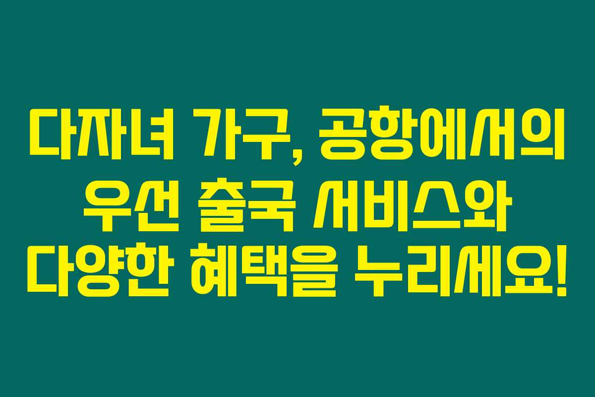 이번 6월부터 시행되는 패스트 트랙 서비스는 다자녀 가구가 공항 출국 시 우선적으로 진행되는 심사 서비스를 의미해요. 제가 누리게 될 이 서비스를 통해 대기 시간을 대폭 줄일 수 있습니다. 공항이 항상 북적대는 점을 생각하면, 이 서비스는 정말 큰 도움이 될 거예요.