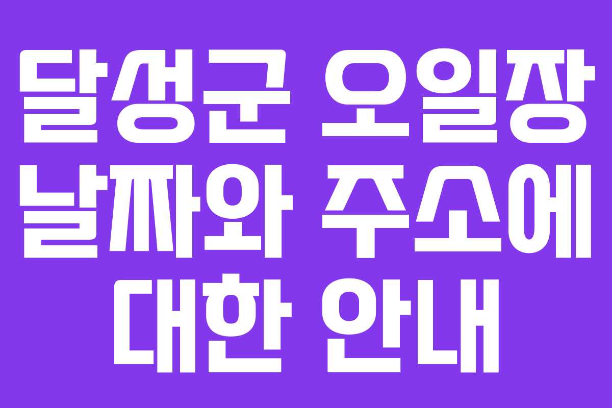 대구 달성군의 오일장 정보를 자세히 안내합니다. 이 정보를 통해 장날에 맞춰 방문 계획을 세우는 데 도움이 되길 바랍니다. 오일장은 지역 경제를 활성화하고 다양한 상품을 접할 수 있는 기회를 제공합니다. 아래는 각 시장의 장날과 주소입니다.