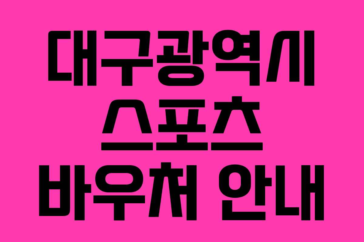 스포츠 바우처 신청은 대구광역시 체육회나 국민체육진흥공단 등 관련 기관을 통해 진행할 수 있으며, 자세한 정보는 해당 기관의 웹사이트나 직접 문의하여 확인할 수 있습니다.