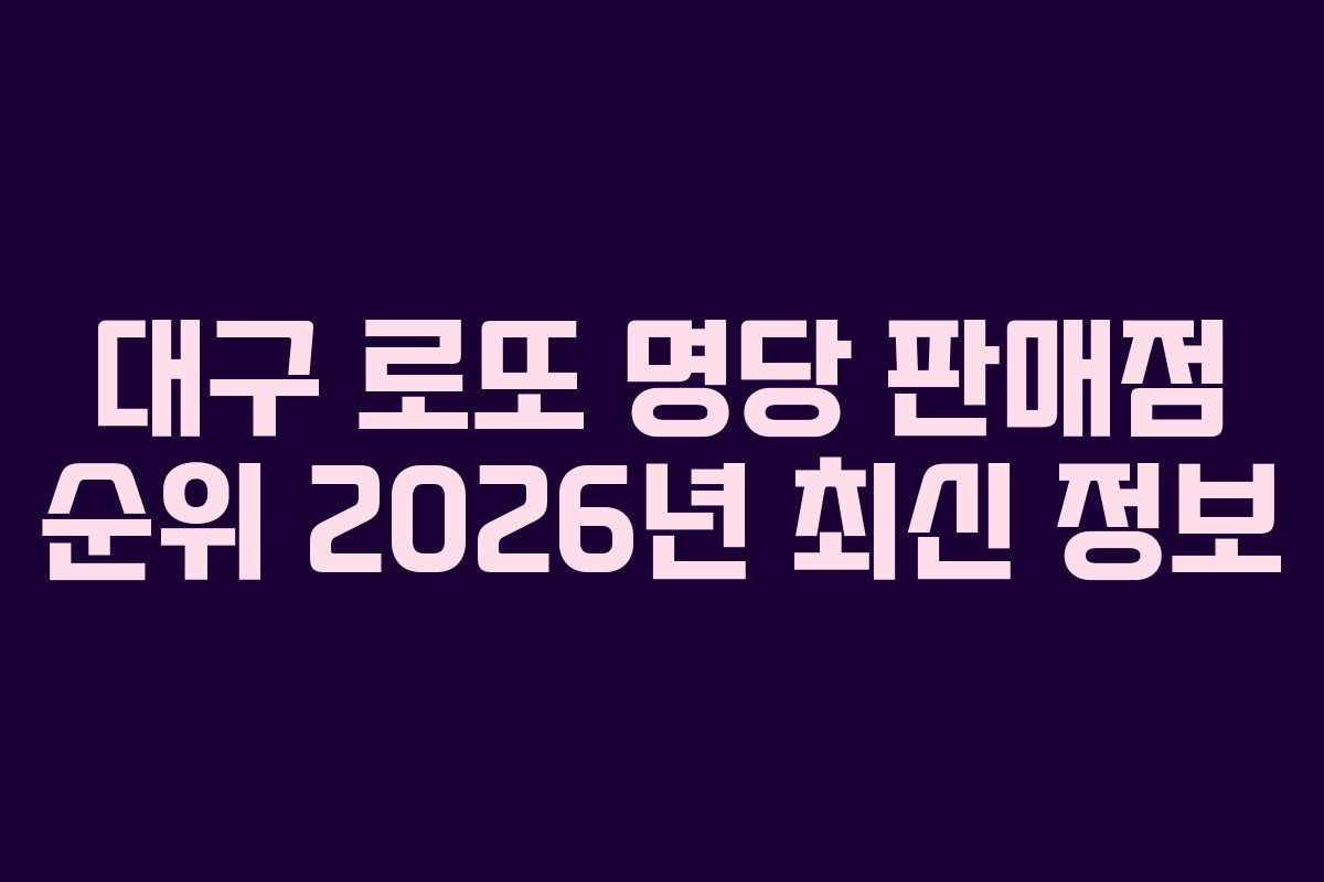 2026년 대구 로또 명당 판매점 현황 및 분석