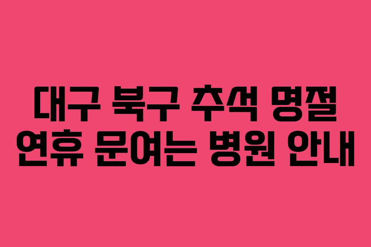 대구 북구의 여러 병원이 추석 연휴 동안에도 진료를 합니다. 각 지역별로 병원 목록을 확인하세요.