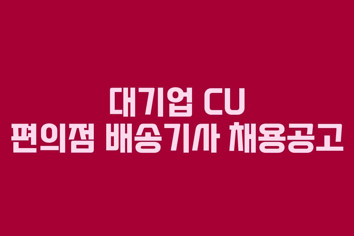 CU 편의점에서 배송기사 채용을 시작합니다. 안정적이고 높은 수익을 원하는 분들에게 좋은 기회가 될 것입니다. 이번 포스트에서는 CU 편의점 배송기사의 모집 분야, 근무 조건, 업무 내용 등을 자세히 소개하겠습니다.