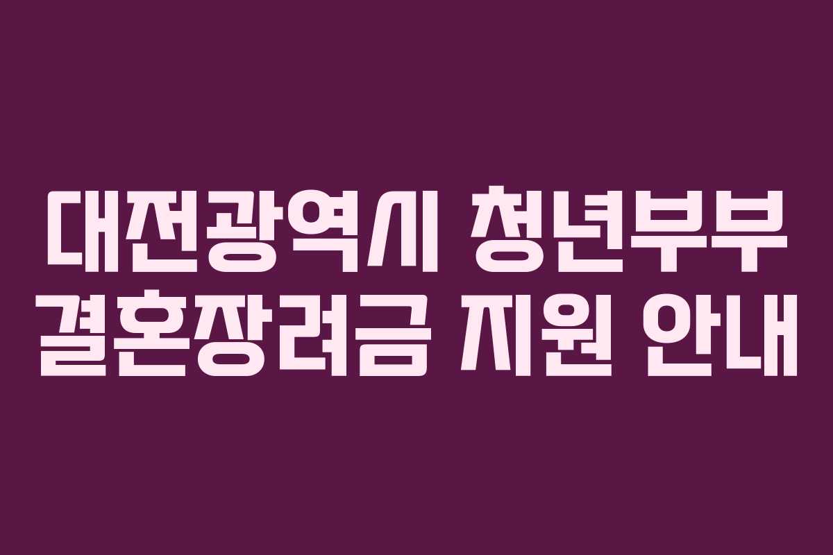 결혼 준비를 하는 청년 부부들에게 경제적 부담을 줄여주는 대전광역시의 결혼장려금 지원 사업에 많은 관심과 참여를 부탁드립니다.