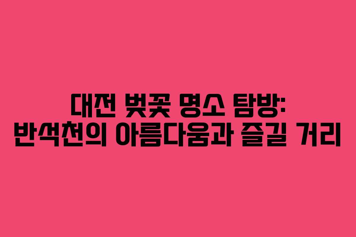 2026년 봄이 다가오며 대전의 벚꽃들이 만개하고 있다. 특히 유성구 반석천 일대는 벚꽃을 즐기기에 최적의 장소로 알려져 있다. 이번 포스팅에서는 이 지역의 벚꽃 명소와 함께하는 즐길 거리, 그리고 그 주변의 아름다움을 살펴보겠다.