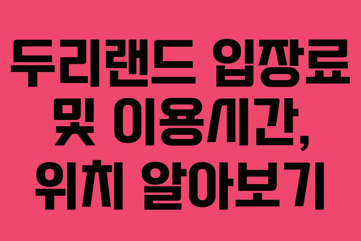 두리랜드는 어린이를 위해 설계된 테마파크로, 가족 나들이에 적합한 장소입니다. 이 글에서는 두리랜드의 입장료, 이용 시간, 위치 등을 자세히 알아보겠습니다.