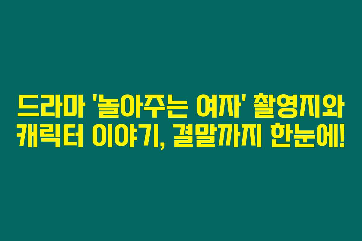 드라마 ‘놀아주는 여자’는 다양한 감정선과 매력적인 촬영지들로 많은 사랑을 받을 것으로 기대하고 있어요. 로맨스와 코미디를 좋아하신다면 꼭 한번 보시길 권해요!