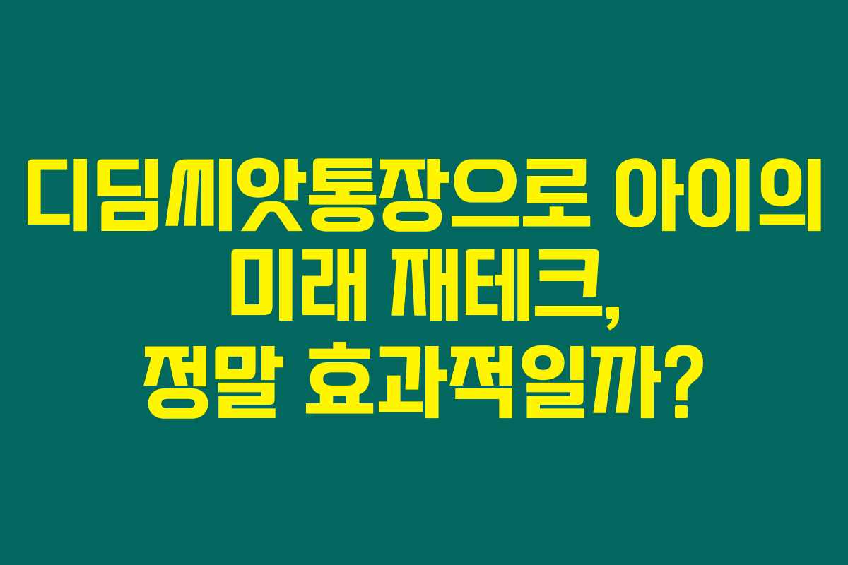 디딤씨앗통장으로 아이의 미래 재테크, 정말 효과적일까?
