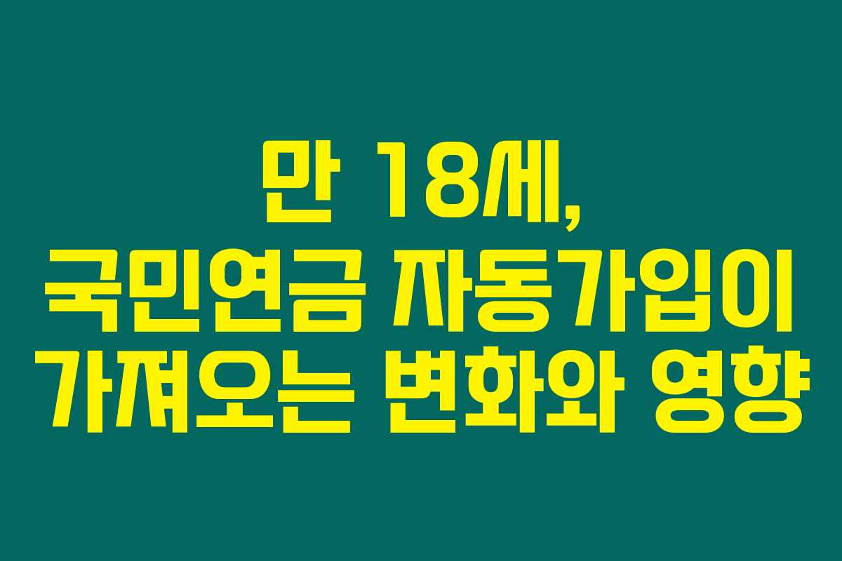 제가 알아본 바로는, 최근 이재명 정부에서 제안한 만 18세의 국민연금 자동가입에 대한 개정안은 기존의 국민연금 체계를 크게 변화시킬 수 있는 혁신적 정책이라는 생각이 들었습니다. 이 정책은 단순히 가입 연령을 낮추는 것에 그치지 않고, 국가가 첫 달의 보험료를 지원해주는 등 미래 세대의 노후 준비에 대한 새로운 접근 방식을 제시하고 있습니다. 아래를 읽어보시면 이 개정안의 구체적인 내용과 장단점, 그리고 공론화된 우려 사항들에 대해 전반적으로 알아보실 수 있습니다.