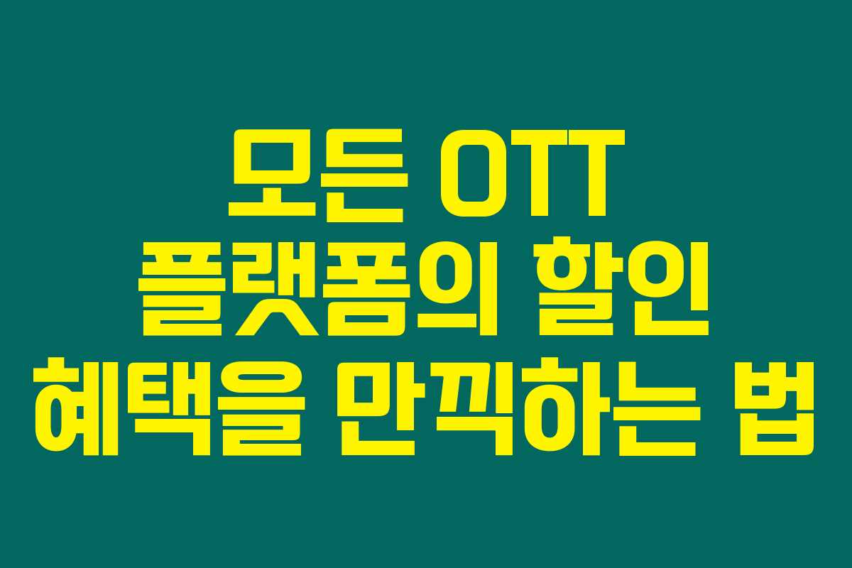 사실 확인해본 결과, 요즘 OTT 플랫폼의 할인 혜택이 풍성하다는 걸 느끼신 적 있나요? 다양한 플랫폼에서 제공하는 할인 프로그램을 알고 활용하면 큰 비용 절감을 경험할 수 있답니다. 제가 직접 조사하고 확인한 내용을 정리해 봤어요. 아래를 읽어보시면 유용한 혜택을 놓치지 않게 될 거랍니다.