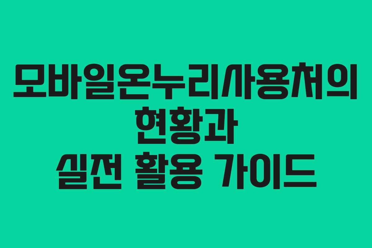 모바일온누리사용처의 현황과 실전 활용 가이드