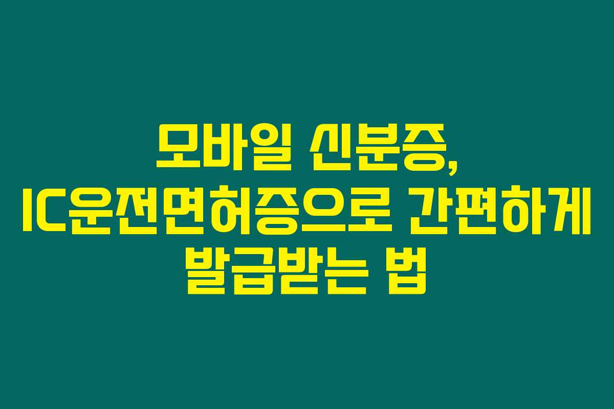 IC운전면허증을 발급받고 나면 모바일 신분증 앱에 등록하여 사용할 수 있어요. 이 과정은 간단하고 빠르기 때문에, 발급 받은 뒤 알아두면 좋습니다. 앱을 다운로드한 후 인증을 마치고 면허증 정보를 입력하면 언제 어디서나 인증이 가능해요.