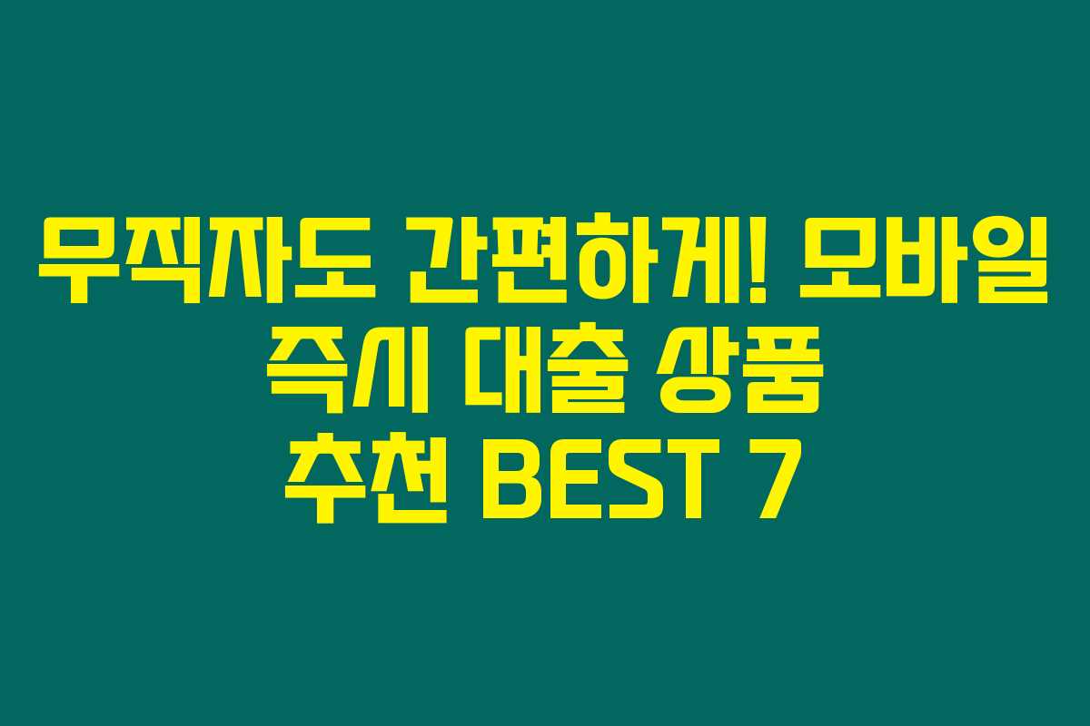 무직자도 간편하게! 모바일 즉시 대출 상품 추천 BEST 7