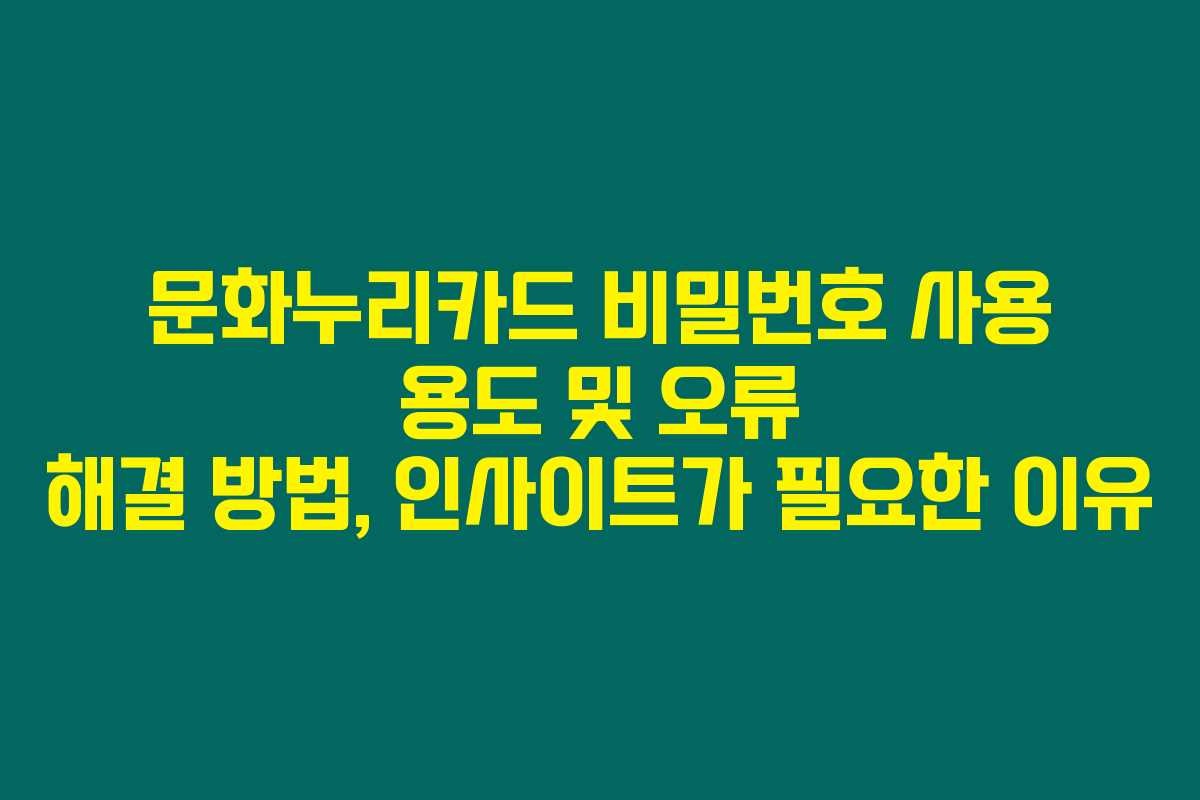 제가 직접 리서치한 바로는 문화누리카드는 문화 활동을 즐기는 데 큰 도움을 주는 카드로, 많은 분들이 사용하고 계시죠. 하지만 비밀번호 문제로 골머리를 앓는 경우도 많답니다. 비밀번호 오류로 카드가 정지되면 불편할 수 있으니, 이와 관련된 정보와 해결 방법을 아래에서 간단하게 정리해볼게요.