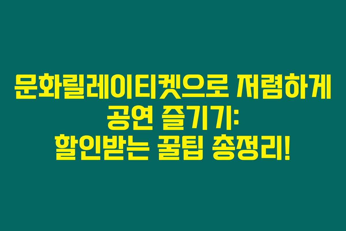 문화릴레이티켓을 활용한 공연 할인받는 방법은 생각보다 간단해요. 아래에서 구체적인 절차를 알려드릴게요.