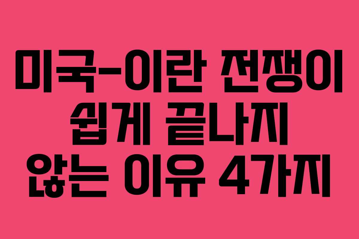 현재 미국과 이란 간의 긴장은 한층 고조되고 있으며, 이 전쟁이 단기간에 종식될 가능성은 낮아 보입니다. 여러 복잡한 요소들이 얽혀 있어, 상황이 더욱 복잡해지고 있습니다. 이번 글에서는 그 이유를 살펴보겠습니다.