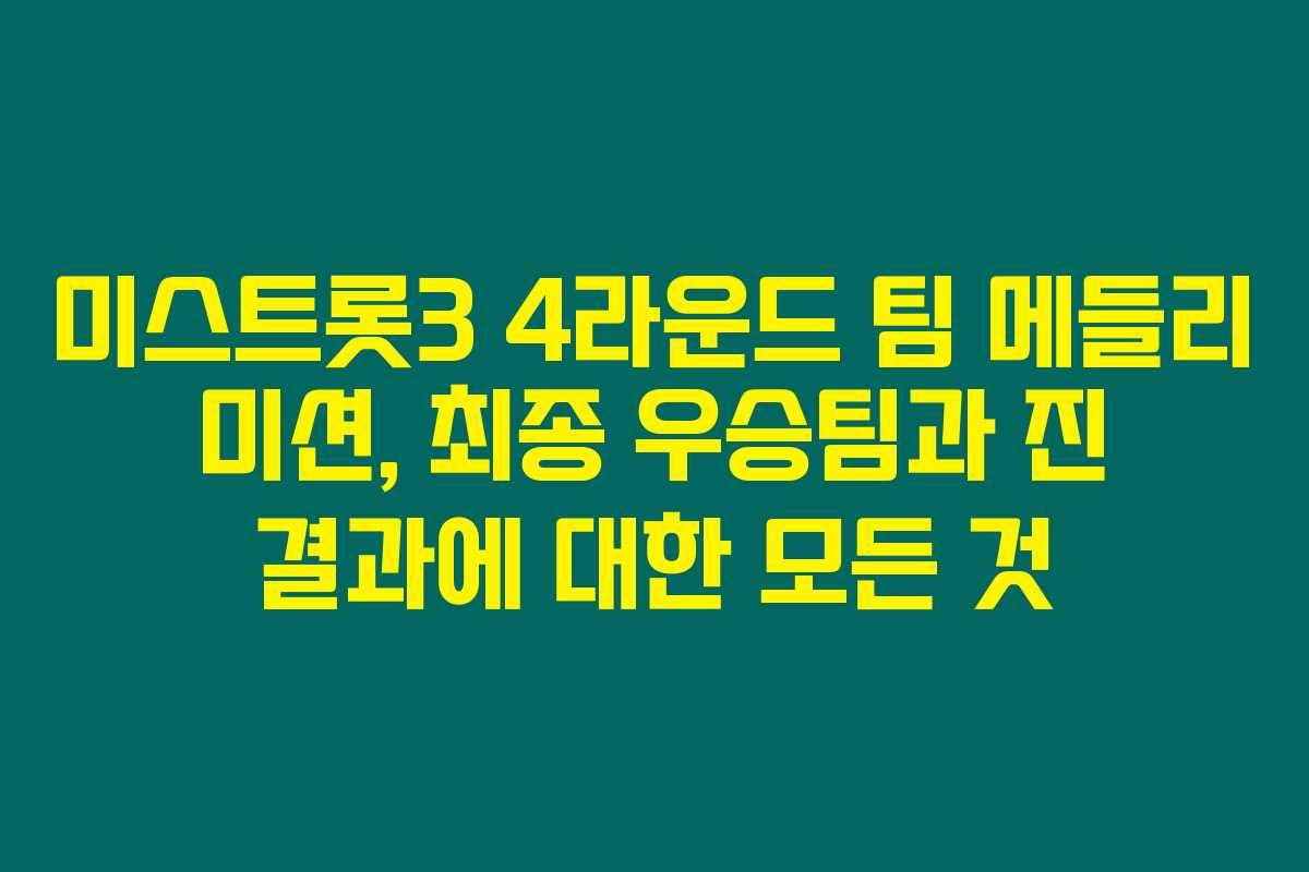 미스트롯3의 4라운드는 팀 메들리 형식으로 진행되어 흥미로운 결과를 가져왔습니다. 결과는 다음과 같습니다.
