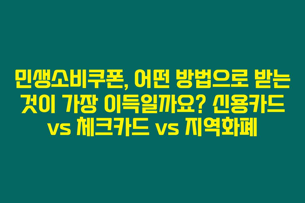 민생소비쿠폰, 어떤 방법으로 받는 것이 가장 이득일까요? 신용카드 vs 체크카드 vs 지역화폐