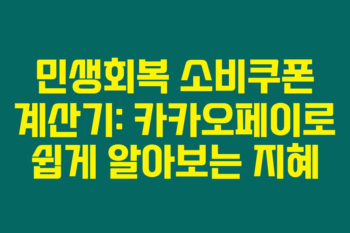 정부는 어려운 경제 상황 속에서 국민 생활 안정을 위해 ‘민생회복 소비쿠폰’을 지급하고 있습니다. 이 소비쿠폰은 국가는 물론 소상공인에게도 큰 도움이 되는데요. 이 글에서는 카카오페이를 통해 소비쿠폰을 어떻게 쉽게 계산하고 활용할 수 있는지 자세히 알려드릴게요.