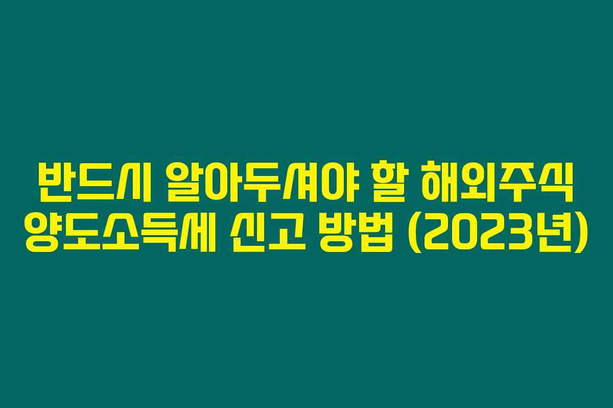 제가 직접 확인 해본 결과로는, 해외주식 양도소득세 신고는 매우 중요한 사항이며, 특히 5월에 맞춰서 신고하는 것이 필수적입니다. 매년 돌아오는 종합소득세 신고기간인 이 시기를 놓치지 않도록 주의하세요. 이 글에서는 2023년 기준으로 해외주식 양도소득세를 신고하는 방법에 대해 상세히 설명드릴게요.