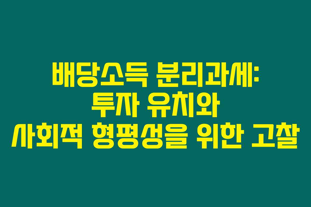 제가 직접 리서치한 바로는, 배당소득 분리과세 제도는 증시 활성화와 사회적 형평성 간의 복잡한 관계를 담고 있습니다. 이 제도가 배당 투자를 유도하고 기업의 성장 가능성을 높일 수 있는 긍정적인 면모를 가지지만, 동시에 소득 불평등과 세수 감소 등의 문제가 발생할 수 있습니다. 아래를 읽어보시면 이 제도의 세부적인 내용과 각국 사례를 통해 배당소득 분리과세의 장단점을 깊이 있게 분석한 내용을 확인하실 수 있습니다.