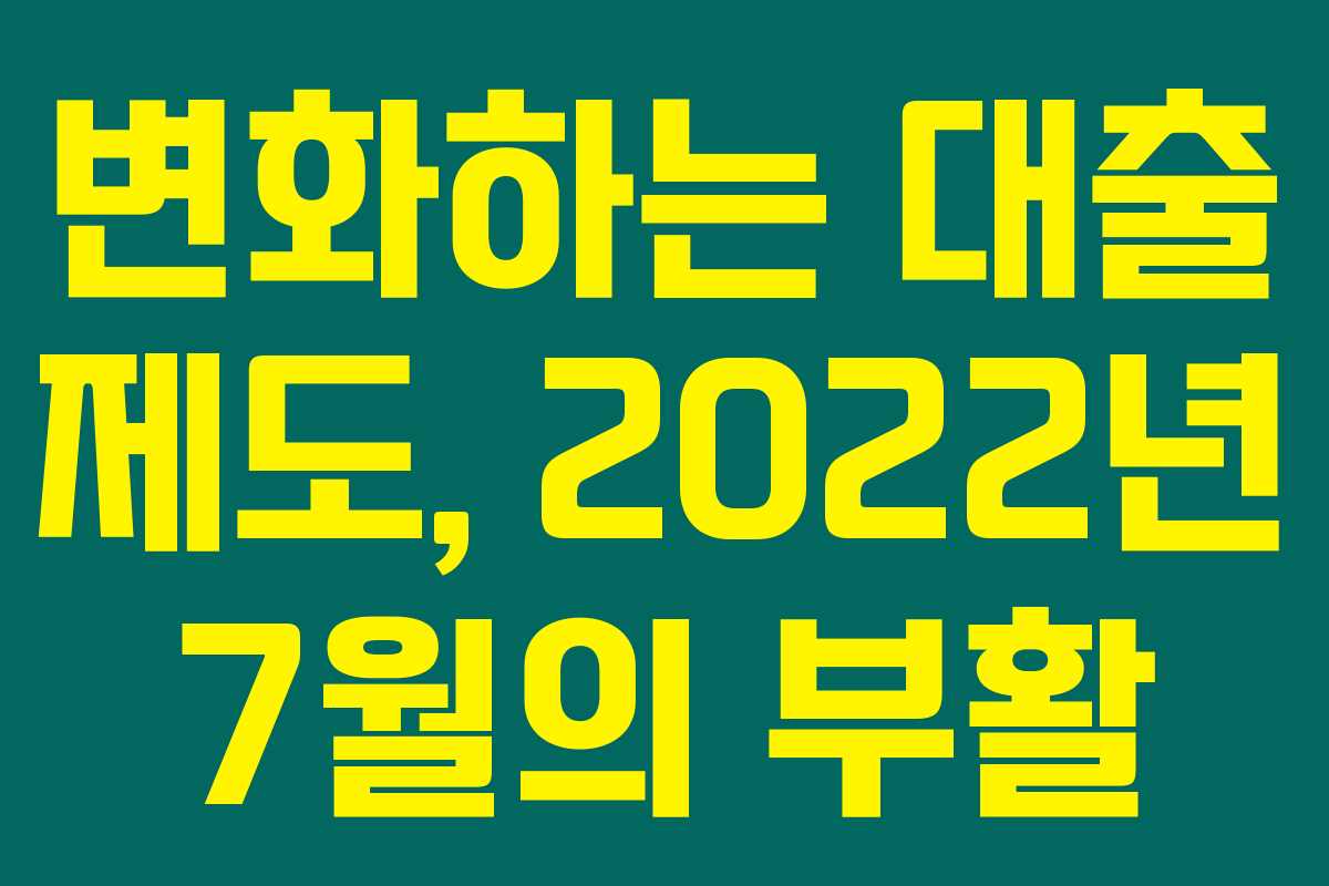 제가 알아본 바로는, 2022년 7월 이후 직장인과 서민들에게 큰 영향을 미치는 대출 제도의 변화가 시행되었습니다. 특히 DSR 규제 강화와 LTV 완화 등은 많은 사람들에게 기회를 제공합니다. 아래를 읽어보시면 이번 변화가 어떻게 그들을 도와줄 수 있는지에 대한 내용이 자세하게 설명되어 있습니다.